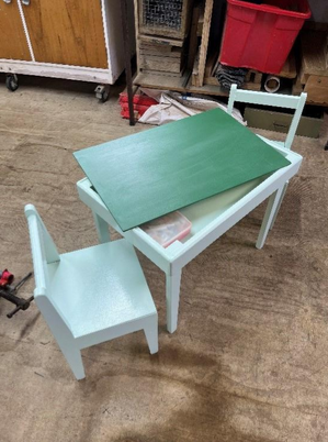 This small toddler’s chalkboard top table and chairs was preloved by Lindsay’s children. Lindsay upgraded the items with a lick of paint and now another member’s grandchildren have the pleasure of owning them. Good Job Lindsay!