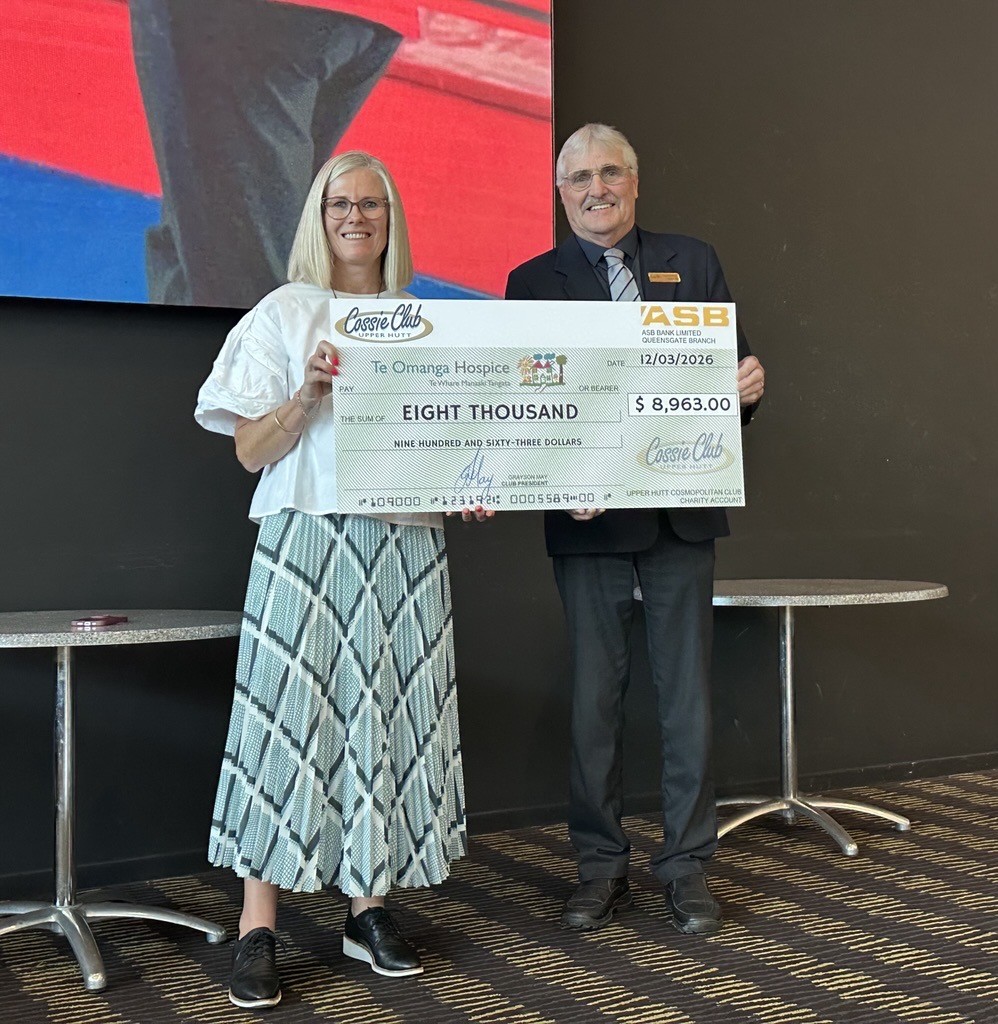The Upper Hutt Cossie Club is proud to present $42,571 to Age Concern Wellington and $8,963 to Te Omanga Hospice. These incredible organisations provide vital support and care within our community, and we’re honoured to help contribute to the important work they do.