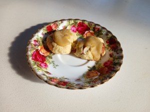 - Form into teaspoon sized balls and place on a greased baking tray. Flatten the biscuits with a floured fork. Bake for 10 minutes.
