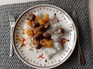 - In a small pot, mix the brown sugar with the cornflour, then stir in the soy sauce, brown sugar, apple cider vinegar, and the juice from the tinned pineapple.