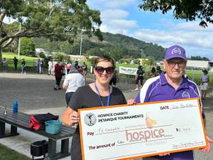 The 6th Annual Hospice Charity Petanque Tournament was held at Maidstone Park on 6th February. The weather was brilliant and the full capacity of the terrain was used with 56 individual entries. Sadly Graeme Morris was unable to attend on the day but Michelle Maxwell kept in close contact with him with videos and photos of the occasion, whilst also assisting with collecting and entering scores, entrance fees and other tasks. Entrance fees, raffles, sausage sizzle, sale table, auctions and cash donations all contributed to a sizeable donation to Te Omanga Hospice from the UHPC, all helped by very generous donations by several companies who donated goods or money towards the occasion.
